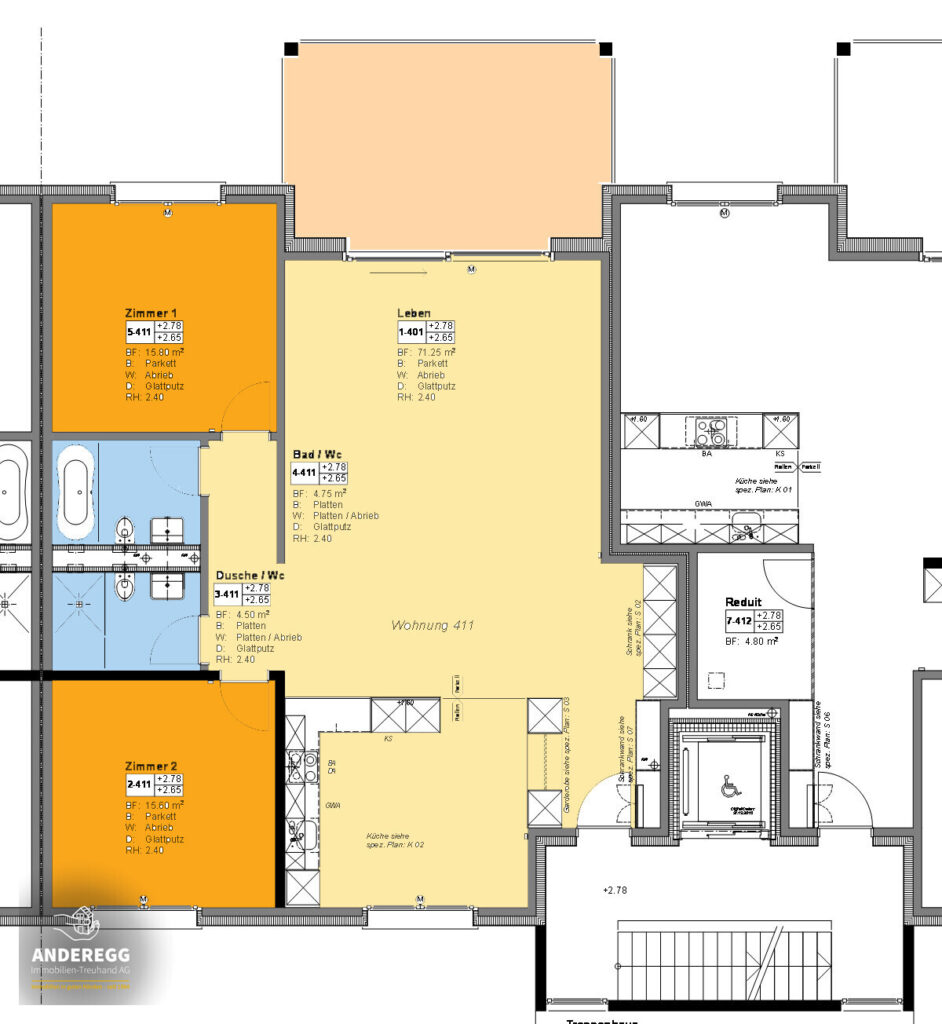 Vier 4.5-Zi.-ETW (auch als 3.5-Zi. realisierbar) mit Balkonen und Lift