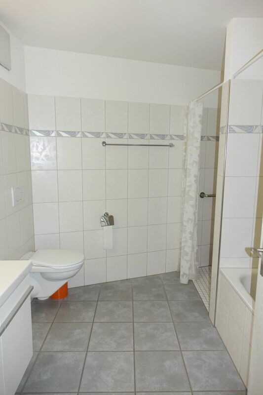 -Badezimmer mit Dusche und Badewanne